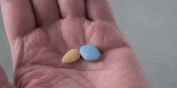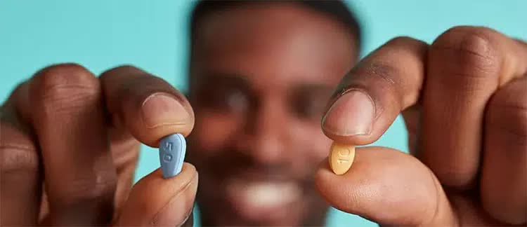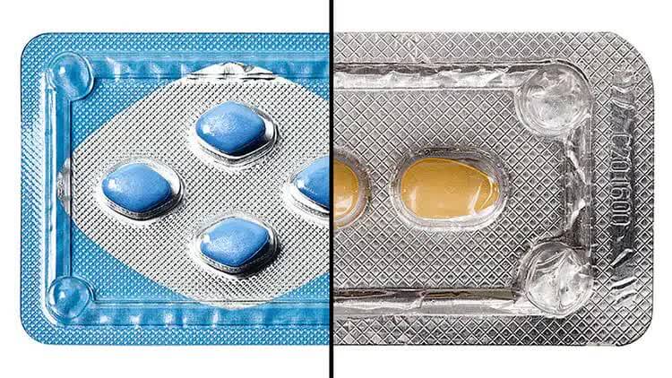 一邊是經典藍色小藥丸威而鋼(Viagra),一邊是長效代表犀利士(Cialis)。