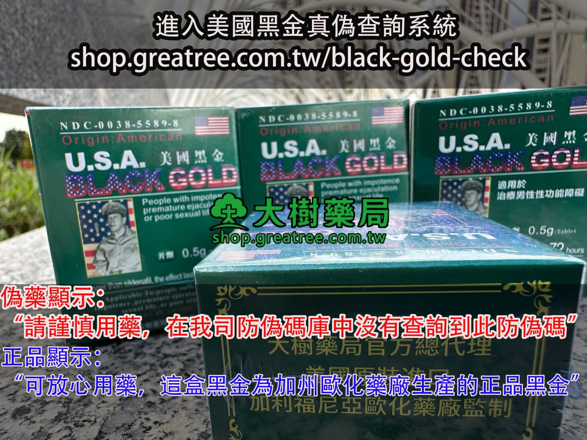 目前大樹藥局出售的美國黑金均為美國加州原廠直郵,每一罐均為正品加州進口,成分是印度產植物山打根與黃牛鞭,純植物提取無副作用適合每日保養用,長期服用可治療早洩陽痿。現在目前就只有大樹藥局有美國黑金代理銷售權,可以直接來我們大樹藥局實體門店購買到第二代美國黑金。也可以直接在大樹藥局的官網線上下單的。