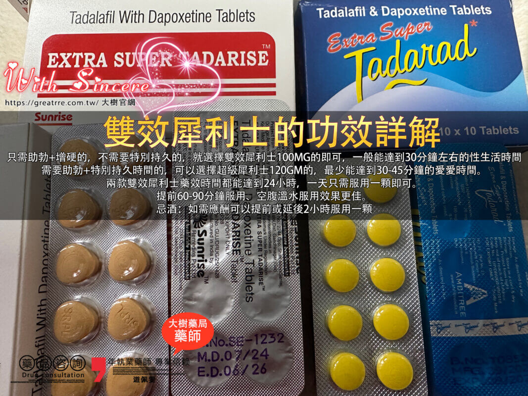 超級雙效犀利士 120mg 1980元/1板(十顆) 每顆含20mg他拉達非+100mg達泊西汀 追求助勃效果與超長持久力的男性