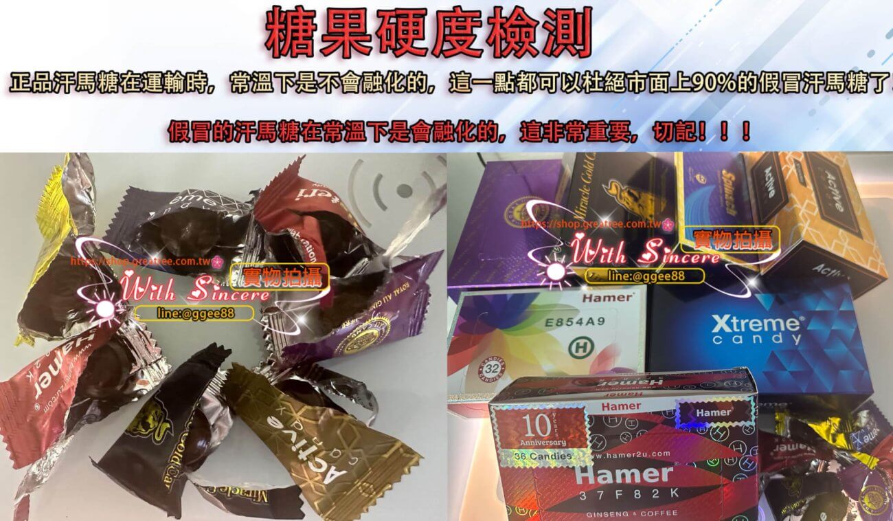 - 糖果硬度:正品汗馬糖應具有特定的硬度,不會在常溫下輕易融化。測試糖果的硬度可以幫助識別真偽。