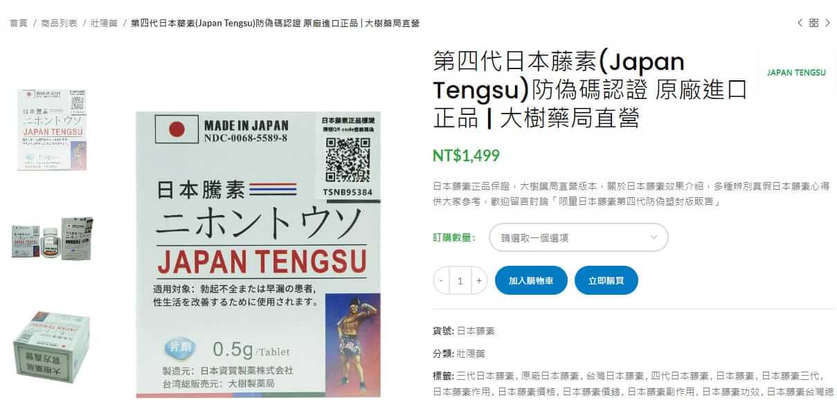 | 日本藤素 1盒 | 16顆/盒 0.5克/顆 | NT$1,499 |