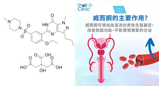 • 作用原理:威而鋼(Viagra,學名:西地那非 Sildenafil)屬於 PDE5 抑制劑。它能抑制磷酸二酯酶-5(PDE5)酶的活性,延長 一氧化氮(NO)-cGMP 訊號 的作用,使陰莖平滑肌放鬆、血管擴張,讓血流更容易進入海綿體,幫助勃起並維持硬度。
